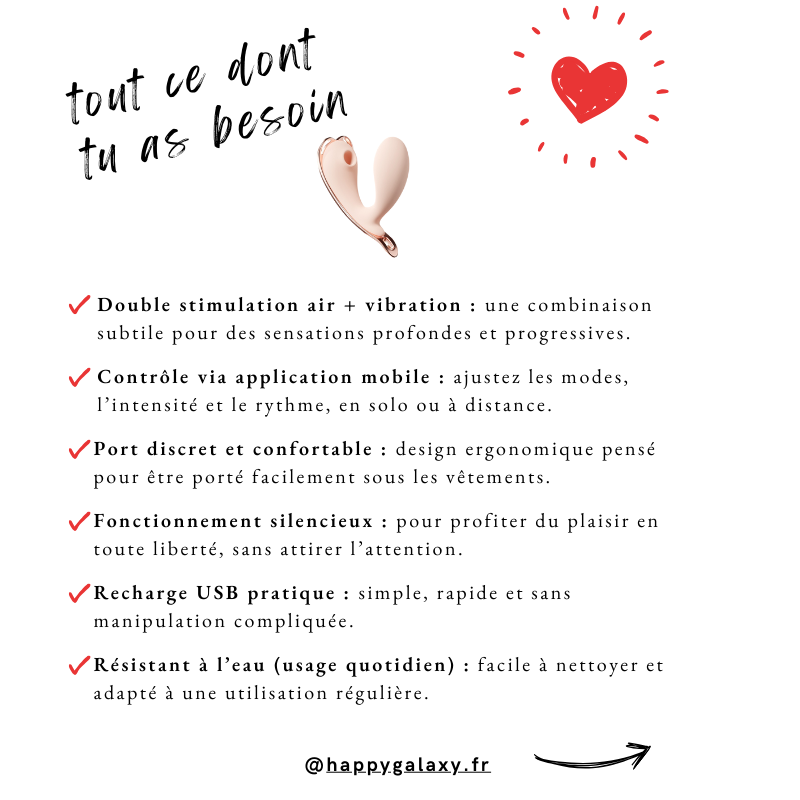 Chez HappyGalaxy, on l’a testé… et clairement adopté. Un compagnon idéal pour celles qui aiment quand le désir s’invite là où on ne l’attend pas, et qui savent que le plaisir est encore meilleur quand il se fait un peu attendre.