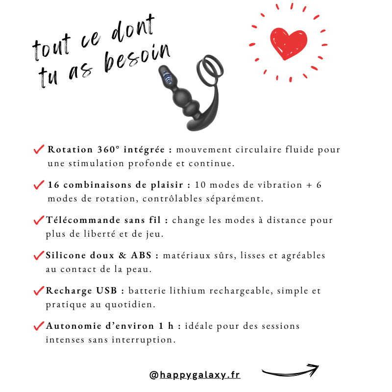 La stimulation simultanée crée une montée de sensations très intéressante. Chaque mouvement relance l’excitation sans jamais être agressif. Un accessoire idéal pour explorer la tension et la coordination des sensations.